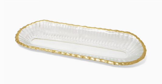 Glass Oval Tray with Gold Rim